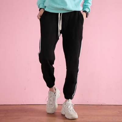 【購買】美式黑白織帶棉長褲(黑色) 29140 搶先看最近流行產品