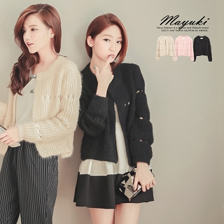 [開箱分享]【MAYUKI】鏤空洞洞毛感針織開襟外套-S.M