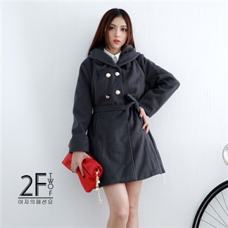 最後幾經考慮我決定下手買【2F韓衣】大翻領連帽雙排扣純色毛呢大衣-灰,它真的讓我很心動