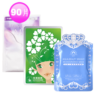 【SHINNING WAY萱薇】水美童顏活力3拼面膜90片(水美人+童顏+G蘆薈各30片)