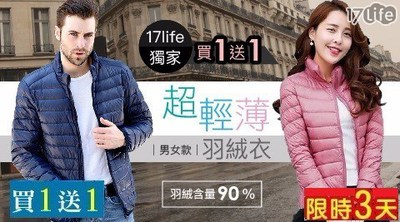 【熱門產品】【買一送一】多尺碼超輕薄羽絨衣男女款(含白鴨絨90%+羽毛10%) 任選 共- 熱銷商品流行