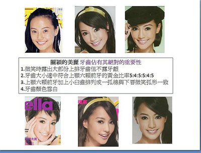 關穎的美麗 牙齒佔有其絕對的重要性 1.微笑時露出大部份上排牙齒但不露牙齦2.牙齒大小適中符合上顎六顆前牙的...