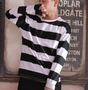 【2019年最新款】美式條紋落肩長T(黑色) 203 結