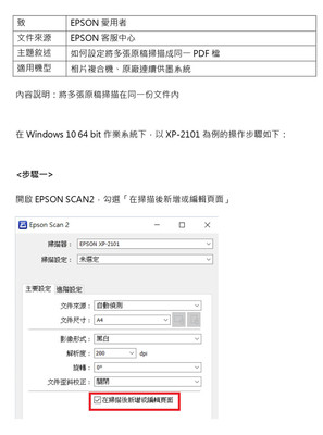 EPSON印表機如何設定將多張原稿掃描成同一PDF檔
