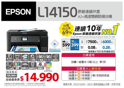 EPSON L14150 A3+高速雙網連續供墨複合機