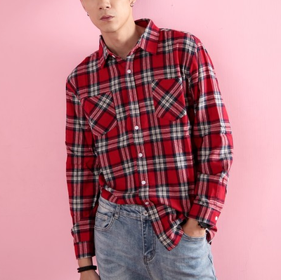 【購買限時優惠】質感後圓弧格紋襯衫(紅色) 29128 熱銷限定商品