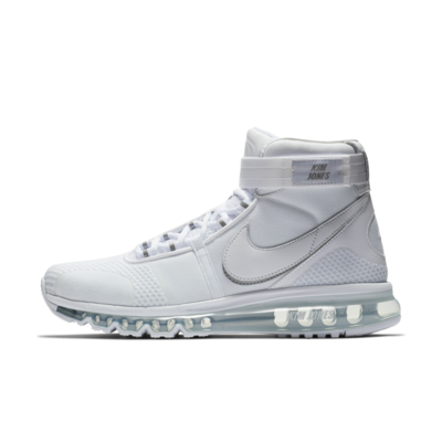Nike x Kim Jones Air Max 360 High 男鞋融合過去和現在的經典鞋型,採用高筒設計、不對稱式鞋帶和全長式 Max Air 緩震系統,提供輕量的全天候舒適體驗。細節設計象徵英國青年的露臺文化,以及 1990 年代的銳舞次文化。