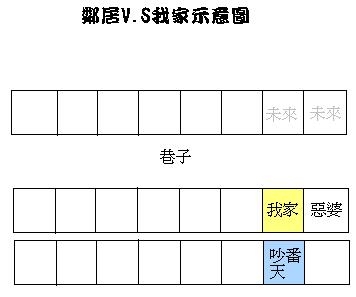 2001-10-12 15:34:50 我家附近有很多怪人怪事,讓我想丟顆炸彈過去的門戶。 我畫了我家與鄰居的位置圖,這樣你們會比較好了解。 ********************...