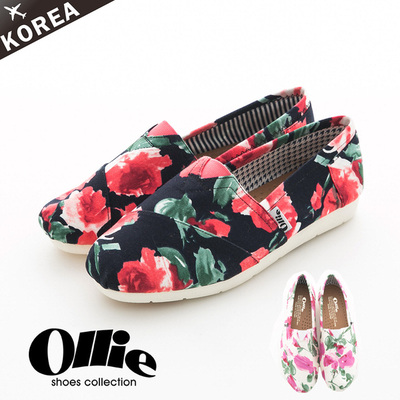 折價券代碼 團購【Ollie韓國空運】正韓空運。唯美繽紛彩繪花朵帆布懶人鞋(72-53-現貨)