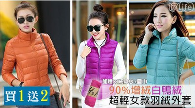 網拍熱門產品 促銷90%增絨白鴨絨超輕女款羽絨外套+贈羽絨背心+圍巾