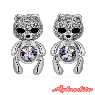 商品訊息特點 商品名稱 : 【Aphrodite愛芙晶鑽】可愛小熊造型18K鑲鑽耳環(白金色)