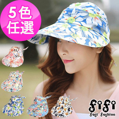 暢銷產品 超值推【FIFI飛時尚】柔美花漾可捲摺休閒兩用防曬遮陽帽(5色任選)