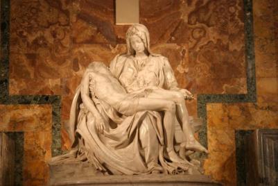 财 聖彼得大教堂是羅馬天主教的中心,建於基督門徒聖彼得的墓地上。耶蘇曾經對彼得說:『你就是彼得,我將在這塊磐石上建造我的教堂。』這座長方形教堂是基督教最大的教堂,在加上出自米開朗基羅之手的穹頂,使得它在世界上聞名遐邇。聖彼得大教堂的原址是君士坦丁大帝建造的一座早期教堂,16世紀時,在這座教堂的地基上建起了聖彼得大教堂。這座偉大的建築有許多價值連城的藝術珍品,其中包括米開朗基羅的雕塑“聖殤像(Pieta)”和主祭壇上貝爾尼尼的青銅鍍金華蓋。
