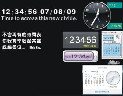 TIME123456789,這是2009年7月8日下午12點34分56秒,設計好你的時間表,躬逢其勝的那一天,你在做什麼呢?