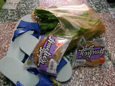 鮮吃一下貝果  花生巧克力牛軋糖....喝綠茶  剔牙