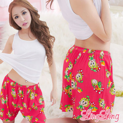 秋冬新款-lingling日系 全尺碼-舒適涼爽印花居家短褲睡褲(娃娃桃)A1723-05 分享文
