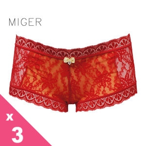 線上週年慶-[MIGER密格內衣]蕾絲網紗低腰三角內褲-黑色+黃色+桃紅 試用文