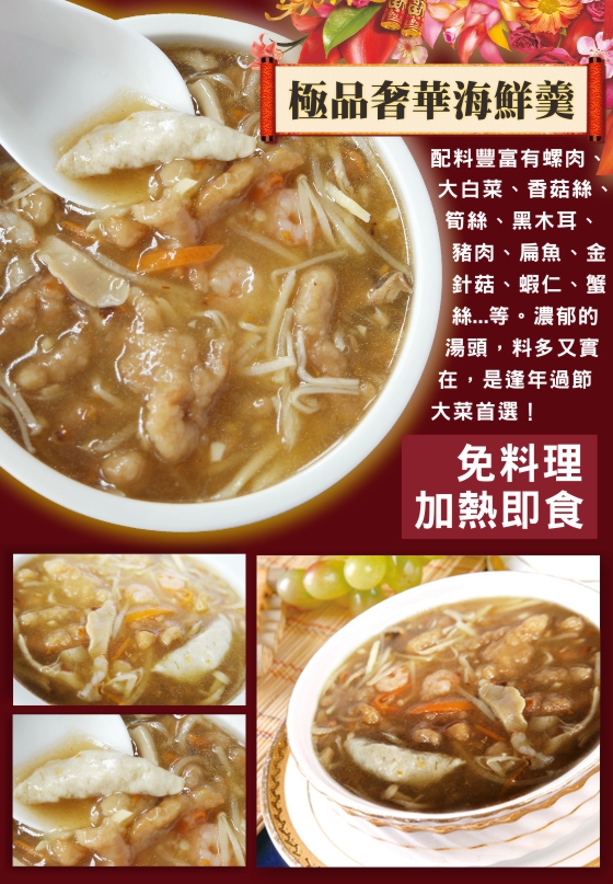 海鮮羹(2000g/份)/人蔘雞(2000g/份)/櫻花蝦米糕(65gx10個)