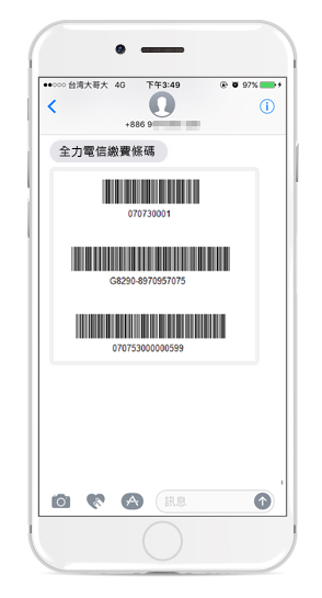 更甚者,可以使用詮力科技領先業界推出的各式客製化Barcode、QR code多媒體簡訊,在郵資高漲的現在,更是傳遞帳單資訊的最佳利器,在人人機不離身的現在,送進手機裡的Barcode、QR code就是用戶的隨身帳單,隨時都可以拿著去繳費,不會忘記再帶帳單出門。