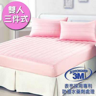 本月折扣 搶購好康【三浦太郎】☆台灣精製☆3M防潑水專利舖棉雙人床包三件套-甜心粉(快速到貨)