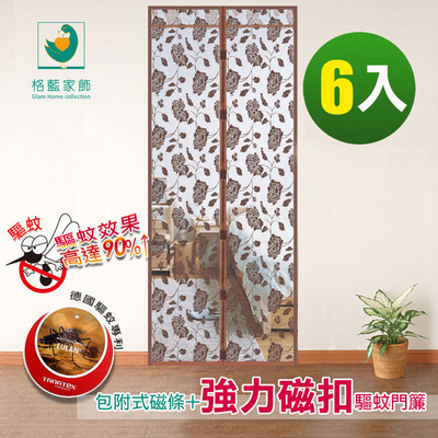 獨家 MOMO【格藍傢飾】植絨珠光紗驅蚊門簾-6入(五款任選)