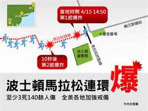 波士頓爆炸案震驚國際,2起爆炸案,12秒內連2爆,而且威力一次比一次大,醫生...能逃離這一區,地面下有地鐵綠色線車站,可以帶你離開市中心。」 波士頓的爆炸案連環爆的方式,專家不排除與基地組織有關,因為第一枚先爆炸,製造...