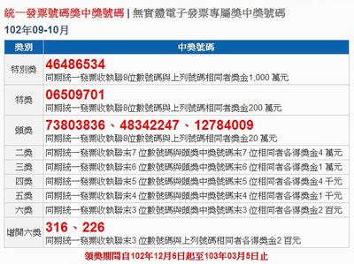 相關詞:3-4統一發票中獎號碼2013,7 8統一發票中獎號碼2013,