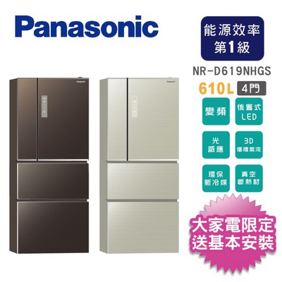 【便宜】【送商品卡1千+保鮮罐★Panasonic 國際牌】610L四門變頻nanoeX電冰箱NR-D619NHGS(送基本安裝)