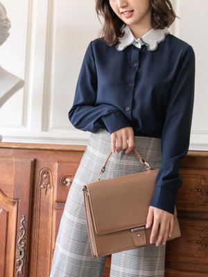 【好康活動】臧芮軒。刺繡花瓣領雪紡襯衫-特價限時活動優惠