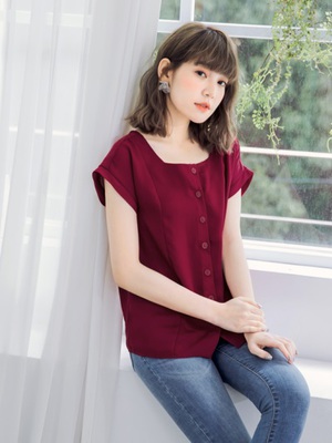 【活動搶優惠】純色方領排釦連袖上衣-活動購買折扣
