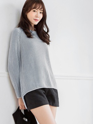 【搶便宜】配色直坑條前短後長針織上衣-價格比較ptt