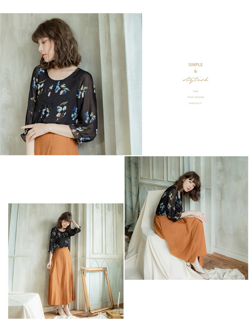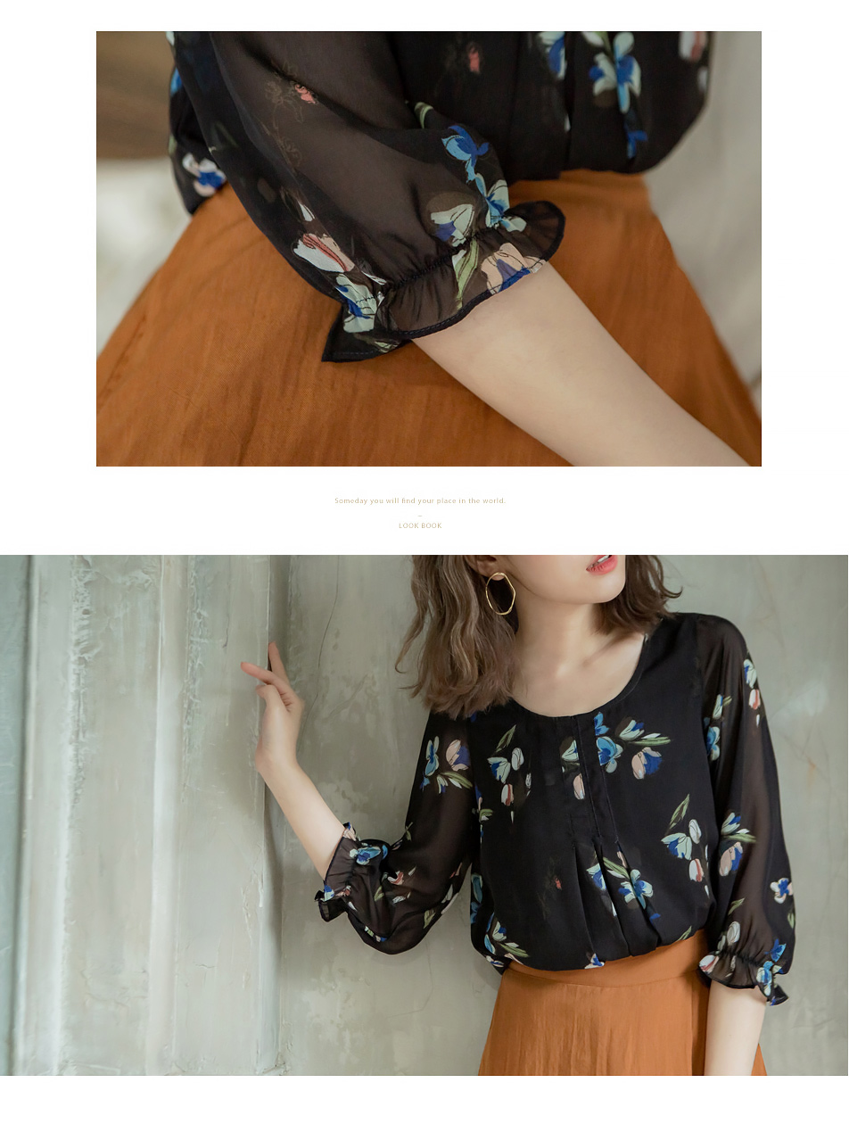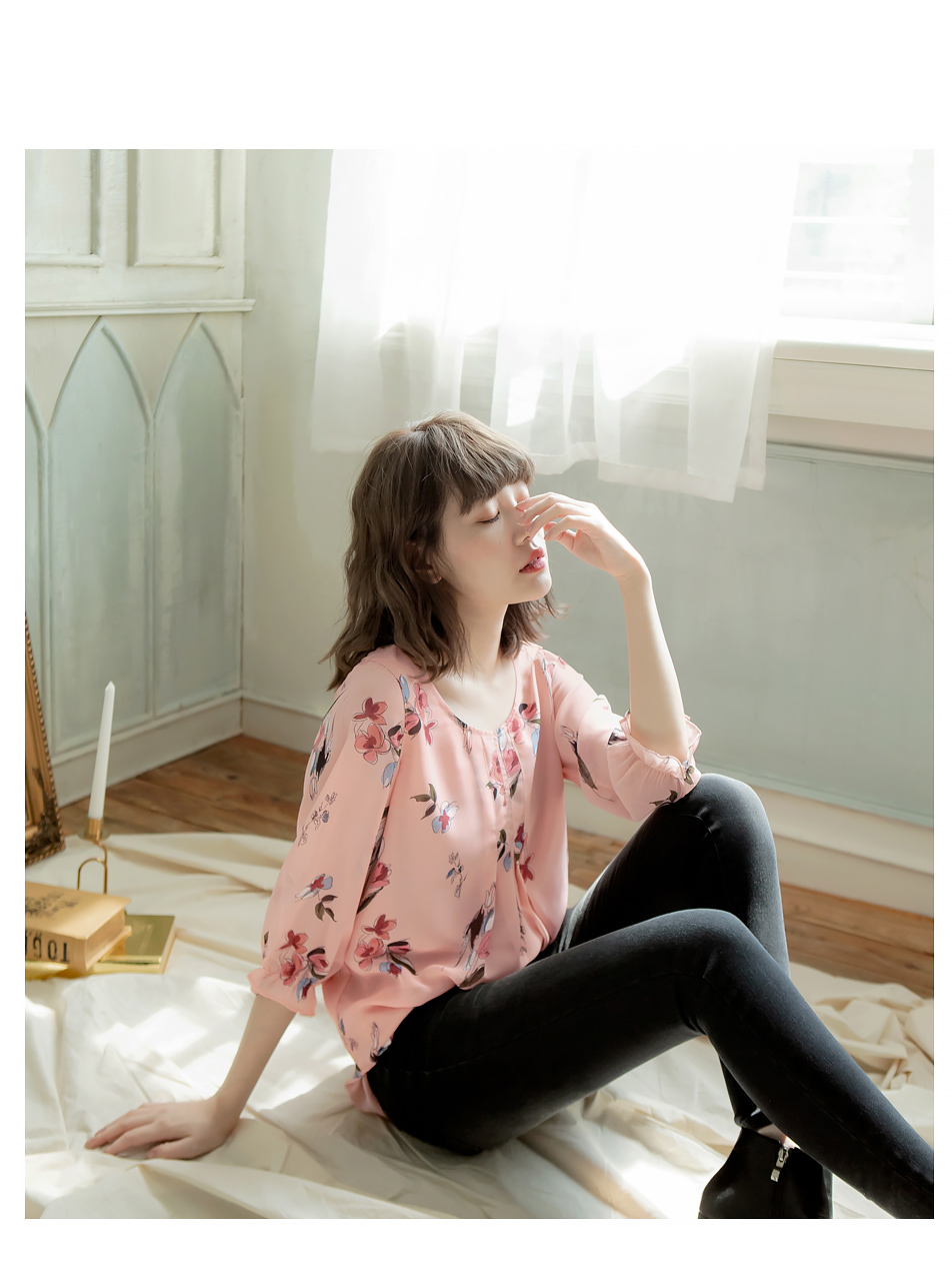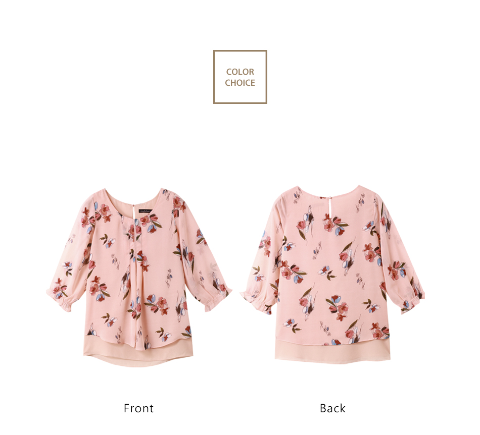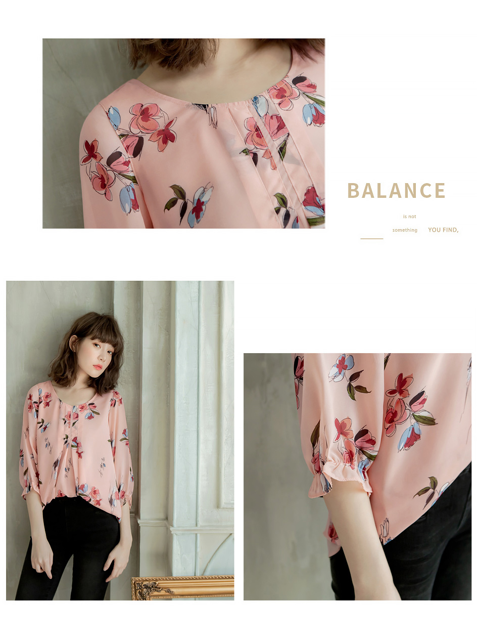 價格,最後選購了滿版花朵胸前壓褶荷葉袖雪紡上衣 ,因為不論評價或價格都