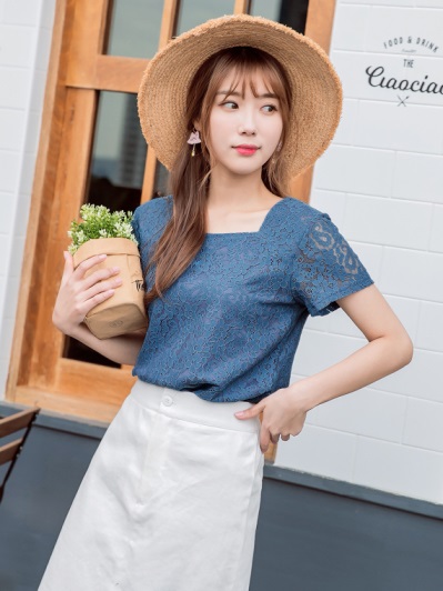 價格,最後選購了滿版蕾絲雕花船型領純色上衣 ,因為不論評價或價格都