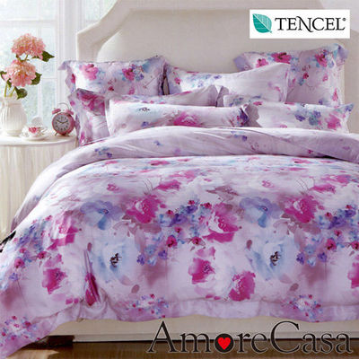 【AmoreCasa】夢幻花漾天絲雙人四件式兩用被床包組推薦 購物 東森購物