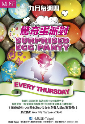 MUSE Club/Muse夜店/台北夜店/京華城Muse 2012年,9月份每週四 ♣驚奇蛋派對♣ 有想過來夜店玩還可以抽禮物的嗎貼心的MUSE 每周四前100名購票的男女都會有意想不到的驚喜喔...