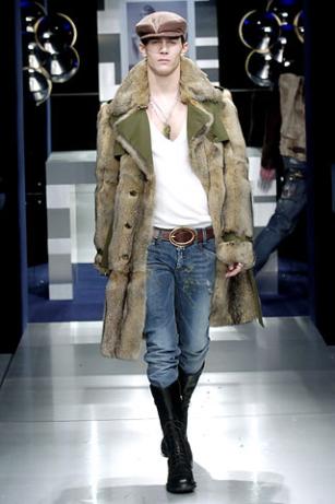 接著是DG為05秋冬男裝所設計新的概念,在這系列中,感覺是 DG將2002秋冬以來的設計概念總整理,麂皮滾皮草、單寧布與迷彩拼接、皮草大衣、簡單的襯衫、窄管西褲、賽車款式外套、鑲有亮片超人、蝙蝠俠、羅賓等等 T 恤………………等等。