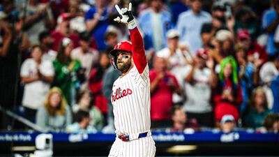 記者戴以柔/綜合報導哈波(Bryce Harper)19日轟出2支飛行距離至少440英里的全壘打。(圖/翻攝自費城人X)費城人19日迎戰水手,陣中看板球星哈波(Bryce Harper)不但轟出本季第...