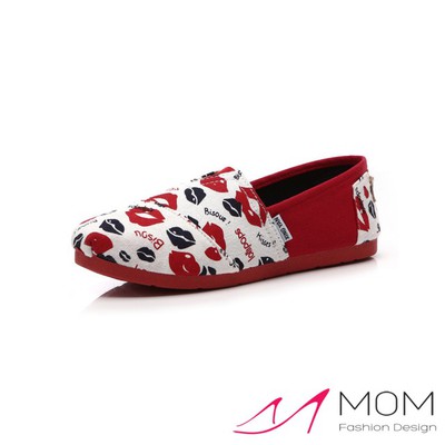 [推薦心得分享]【MOM】美式潮流休閒舒適帆布鞋 懶人樂福鞋(紅色唇印)ptt評價