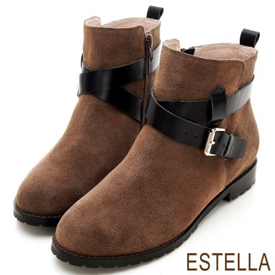 推薦好穿的【ESTELLA】全真皮釦環交叉皮帶短靴(咖)品牌推薦