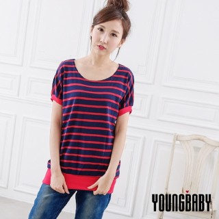 [最新推薦]【YOUNGBABY】MIT 撞色條紋羅紋袖口上衣(共4色)好穿搭 T恤品牌推薦
