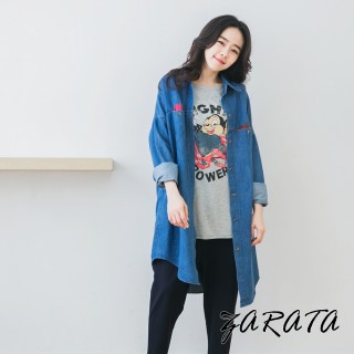 [2015心得推薦]【ZARATA】翻領老虎印花側弧形牛仔長版襯衫好穿搭推薦 長版上衣穿搭