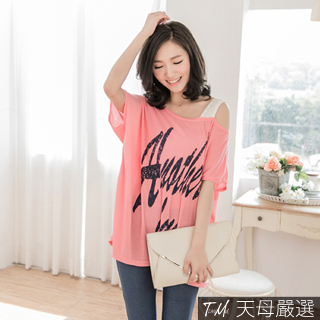 [最新推薦]【天母嚴選】下殺199!寬鬆版-寬領蕾絲肩帶字母短袖上衣(共三色)穿搭推薦 T恤品牌推薦
