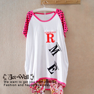 [2015心得推薦]【JET-WELL】韓版英文字母拼接點點短袖造型長版T恤(二色).品牌好穿嗎- 名模衣櫃