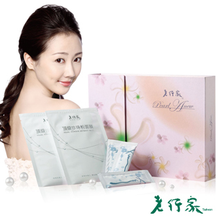 【老行家】珍珠美白禮盒保養首選,送禮自用兩相宜!!★30入珠珍粉+頂級珍珠粉面膜5片★【老行家】30入珍珠粉老行家珍珠粉是運用低溫超音波震盪方式, 將珍珠粉原粒徹底淨化處理後,再採『低溫專利製程』生產技術, 全程溫度有效控制,不因高溫破壞,完整保留養份, 再由低溫研磨法萃取去除雜質、重金屬、農藥殘留, 不含人工添加物及防腐劑,適合人體吸收,25,000細目珍珠粉高鈣含量, 珍珠粉含90%以上的鈣質,10餘種人體必需胺基酸 有由人體內部補充外表皮膚新陳代謝所需的重要蛋白質成分, 由內而外以達調整體質的效果 每日早晚搭配溫水食用,讓肌膚透亮起來【老行家】珍珠粉面膜5片以木漿製成之真絲面膜布,添加珍珠萃取精華胺基酸, 給肌膚滿滿的珍珠滋養成份,幫助肌膚修護,讓肌膚水嫩不黏膩, 長效保濕、粉嫩柔滑,呈現肌膚白皙柔嫩光采。 本產品貼膚性、鎖水性佳,二日敷用一次, 讓細膩的珍珠活力因子幫助肌膚吸收, 展現勻淨美麗的清透明亮。????<品牌故事>