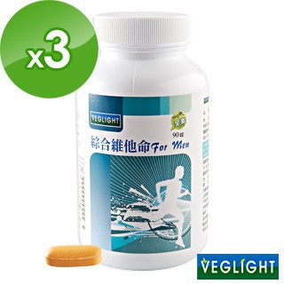 【素天堂VEGLIGHT】綜合維他命For Men ◆優惠組合:3瓶組 (每瓶皆為90顆裝) ◆本產品全素可食用 ? ◎ 每瓶90顆大包裝 ◎專門為男性朋友所推出的綜合維他命配方 一天一粒基礎打底,給您最根本的健康防護罩 ?? ★涵蓋多種基礎營養元素:本產品含有-維生素B群、維生素C、葉酸、生物素、維生素E、礦物質鈣、鐵等二十多種基礎營養元素! ? 本產品更針對男性朋友添加最需要的機能營養成份--美國專利FloraGLO? Lutein 葉黃素榮獲世界34國製造專利