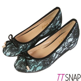 【TTSNAP】『名媛美鞋』緞面蕾絲內增高娃娃鞋(藍色)
