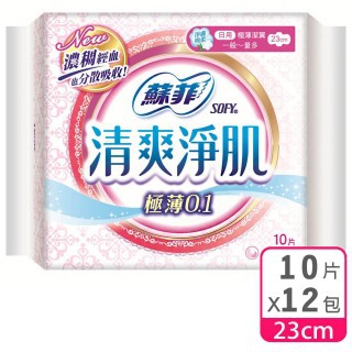 【蘇菲】清爽淨肌極薄0.1潔翼日用(23CM/10片 x 12包/組)Yahoo!奇摩購物中心