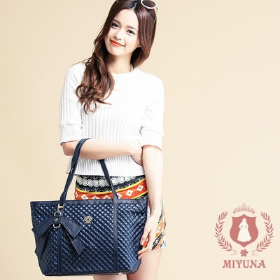 【MIYUNA真皮】夢幻公主-蝴蝶結氣質全真皮包(氣質藍)