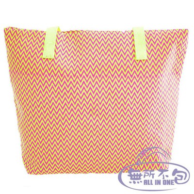 【無所不包】B073潮流幾何*鋸齒條紋螢光色肩揹托特包(潮流黃)