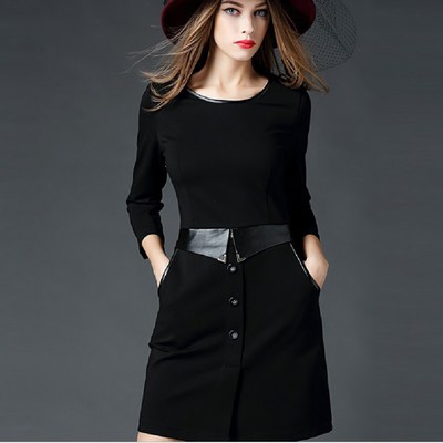 [挑選推薦]私心分享@【ABELLA 艾貝拉】PU皮包邊腰飾下擺開叉A字裙洋裝連衣裙(S-XXL)價格評比